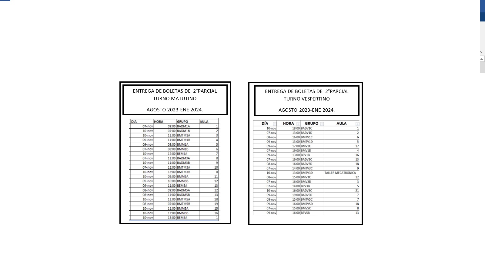 Buenos días padres de familia, por este medio les hago llegar el archivo de la calendarización de la entrega de Boletas del 2° Parcial de Ambos Turnos.