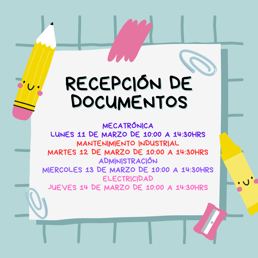 HORARIO DE RECEPCIÓN DE DOCUMENTOS DEL 11 AL 14 DE MARZO 2024 DE 10:00 HRS. A 14:30 HRS. EN ORIENTACIÓN EDUCACTIVA.