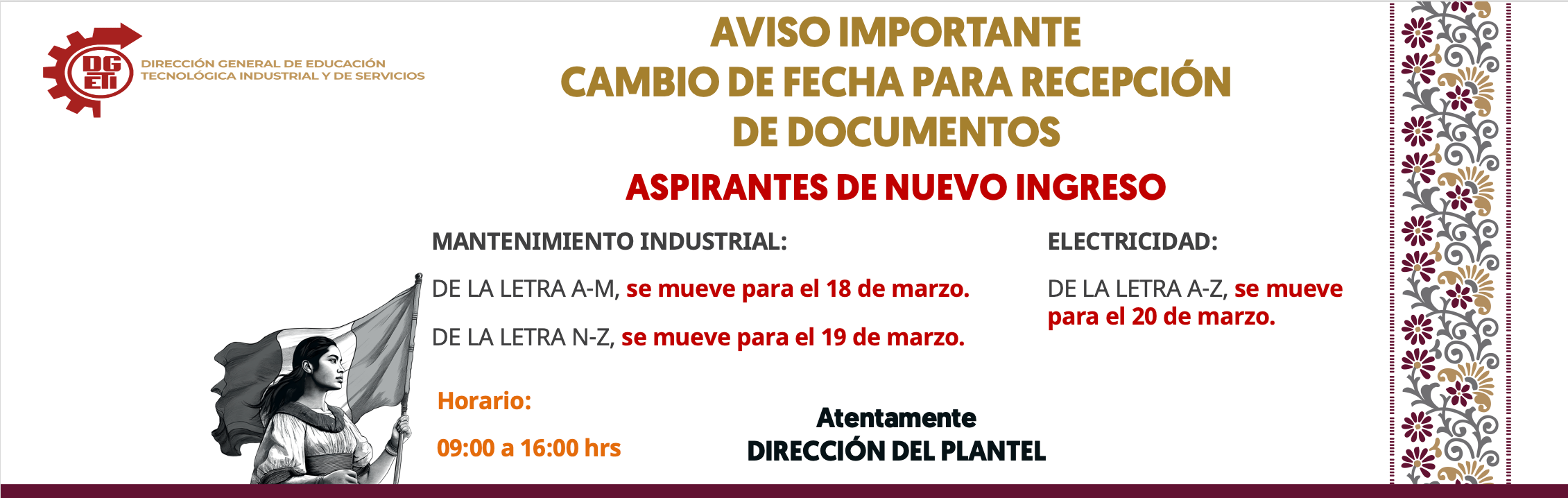 CAMBIO DE FECHA DE RECEPCIÓN DE DOCUMENTOS