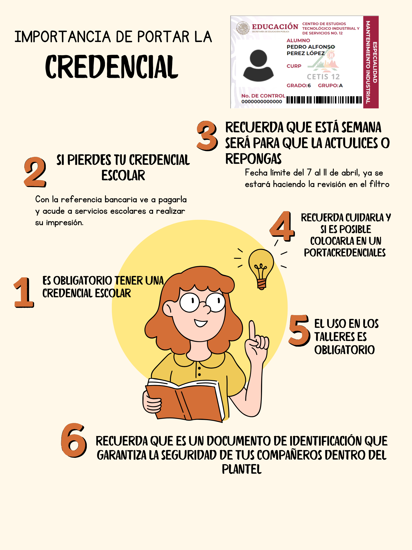 Recuerda que si tu credencial está dañada, despintada o la extraviaste: del 07 al 11 de abril debes reponerla ya que será la última semana para poder ingresar al plantel.